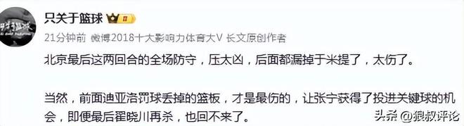 翟晓川末节已经拼老命拿了13分5篮板2盖帽,但北京攻防缺口太多了,被去年季后赛遭到自己横扫的山西完成复仇。