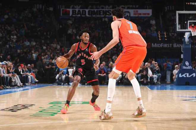 进入第四节比赛,阿巴基率先暴扣追平,霍姆格伦连续两次暴扣,猛龙连得5分反超1分。肯威三分回敬,双方随后接连打铁,肯威继续中投扩大6分优势,猛龙连续造犯规4罚3中。亚历山大中投命中,猛龙连得4分追到差1分打停雷霆,多尔特中投回敬,巴恩斯暴扣。亚历山大两罚一中,奎克利连中两记三分反超4分,霍姆格伦内线得分续命,双方接连打铁。谢德被亚历山大犯规两罚不中,奎克利抢到关键篮板被犯规两罚全中,还剩4.7秒猛龙扩大4分优势。雷霆再追2分无力回天,最终雷霆爆冷惜败猛龙。