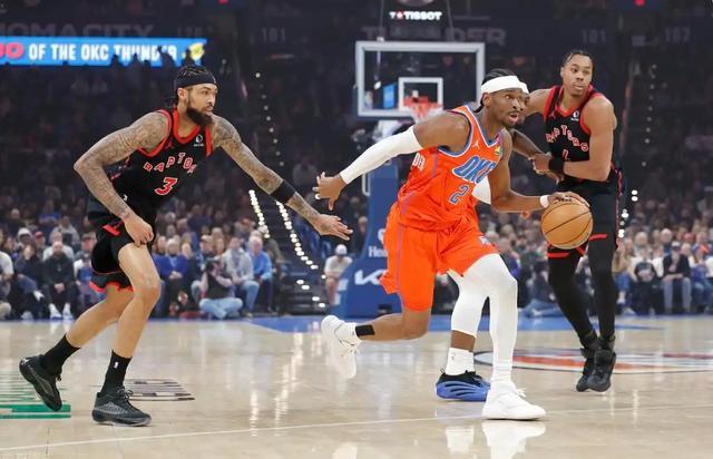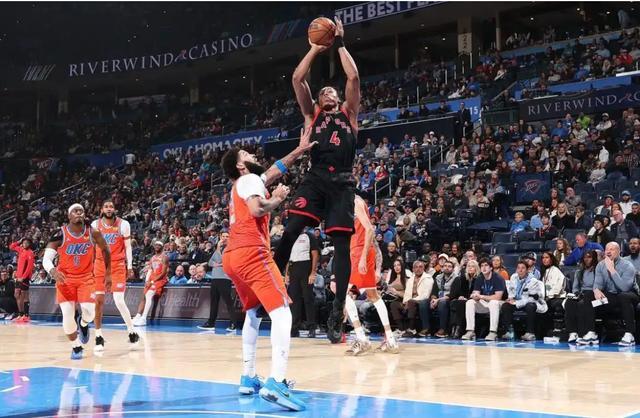 雷霆阵容不整。哈尔滕施泰因和杰伦-威廉姆斯都不能打,亚历山大得到24分。猛龙方面,再次展现出得分点分散的特点,全队共6人得分上双。奎克利得到全队最高的23分。比赛进行到最后时刻,终场前8.2秒,斯科蒂-巴恩斯抢到金子般宝贵的进攻篮板,奎克利造成对方犯规,2罚全中,猛龙领先4分。虽然以赛亚-乔命中上篮,但时间已全走完。