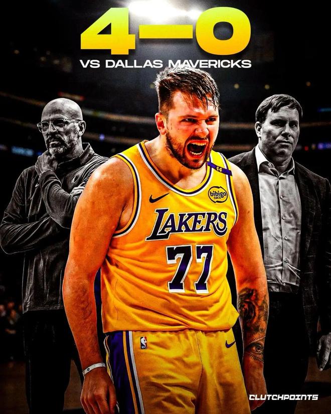 0胜4负,这是独行侠自交易东契奇之后与湖人的交手战绩。