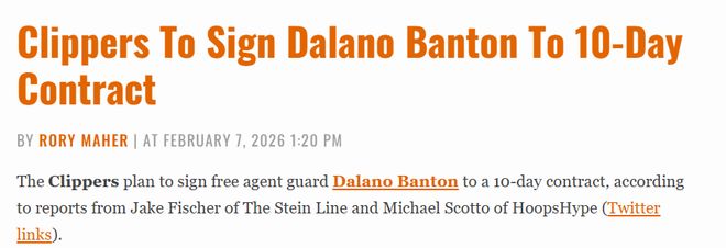 北京时间2月8日,据名记Fischer和Scotto报道,此前连续送走哈登和祖巴茨的快船又有新运作,他们用一份10天短合同签下自由球员达拉诺-班顿。