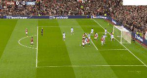 3' 曼联获得角球机会,马圭尔头球攻门,球击中横梁弹出。
