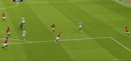 伤停补时阶段,曼联第五次将球送进曼城的球门,库尼亚传球,芒特替补上场2分钟包抄破门,但库尼亚越位在先。
