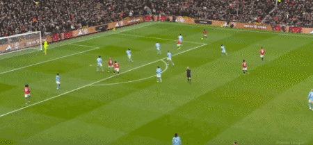 第4分钟,多古左路低平球传中,胡桑诺夫关键解围,随后B费开出角球,马奎尔近距离头球攻门击中横梁弹出,曼城逃过一劫。