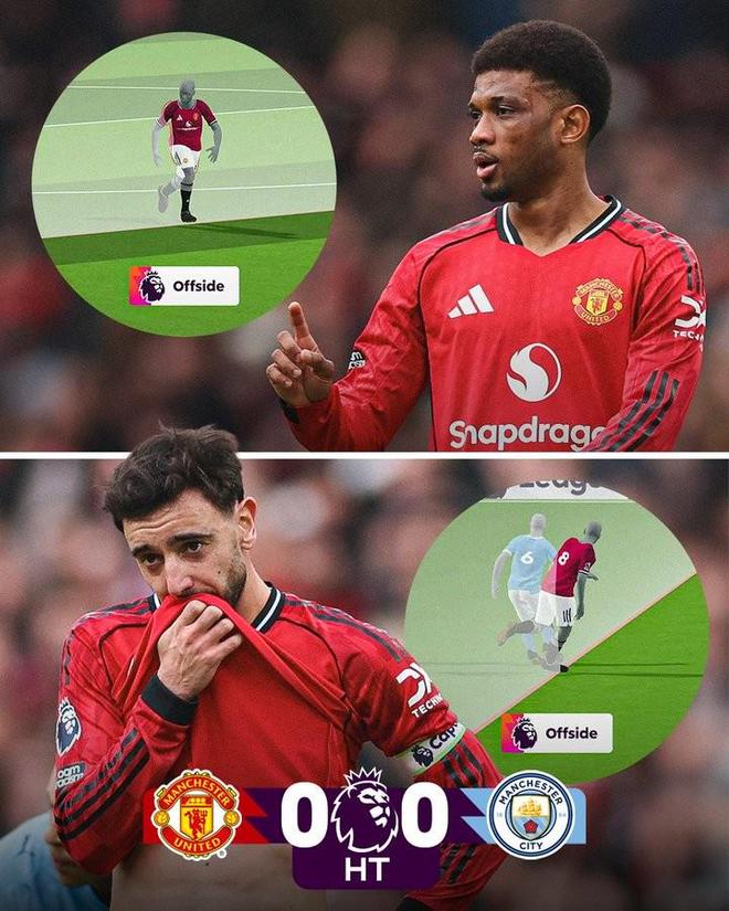 北京时间1月17日,英超第22轮焦点之战曼市德比正在进行中,半场战罢时双方的比分是0-0,曼联上半场两次进球因越位被吹,4次越位已经是本赛季英超上半场比赛最多。