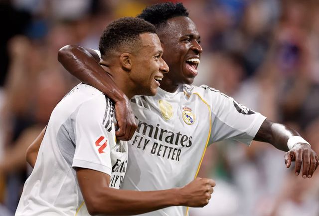 皇马(433):库尔图瓦/卡瓦哈尔、劳尔-阿森西奥、赫伊森、弗兰-加西亚/居莱尔、琼阿梅尼、贝林厄姆/巴尔韦德、姆巴佩、维尼修斯
