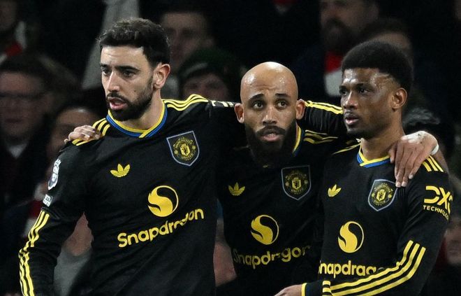 下半场易边再战。第50分钟,曼联再次进球!布鲁诺-费尔南德斯和多古撞墙配合。多古随即在禁区弧顶处起脚远射,皮球像炮弹一样钻入球门左上角!这脚世界波太漂亮了!曼联竟然反超比分!3分钟后,多古带球强行突入禁区左侧,起脚劲射,踢偏了。随后,萨卡内切射门被挡了出去。
