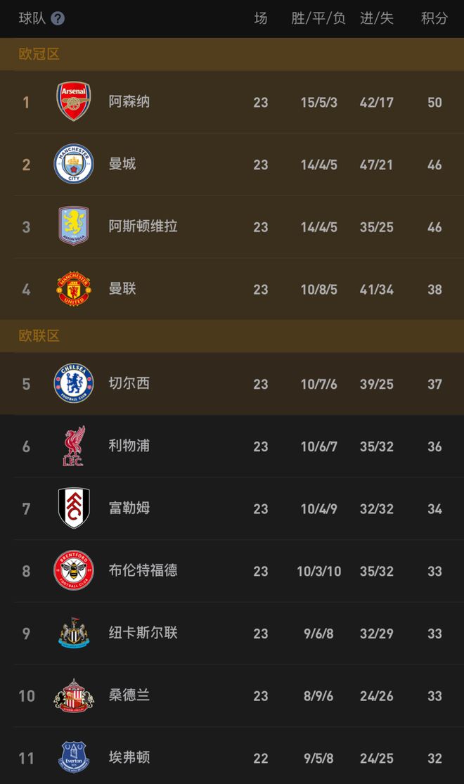 此役获胜后,曼联英超6轮不败(3胜3平),23轮积38分,赛季首次跻身积分榜前4名。而阿森纳遭遇3轮不胜(2平1负)后,被曼城和维拉缩小分差至4分。