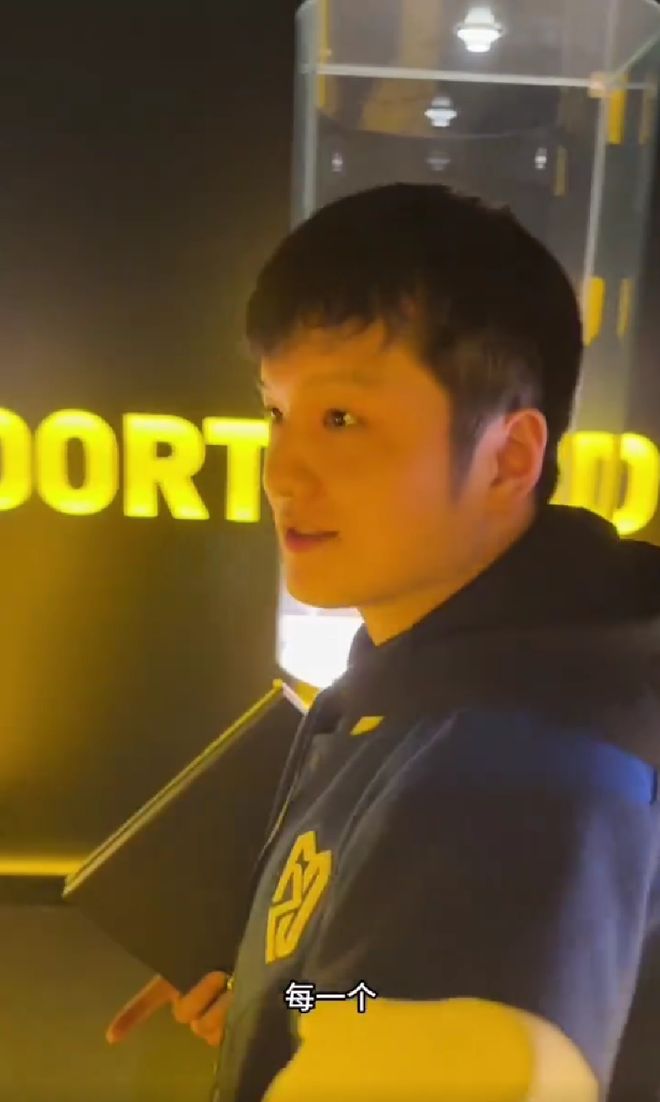 多特蒙德的俱乐部新闻官问樊振东,“你最喜欢哪座奖杯?有看到你最喜欢的奖杯吗?”