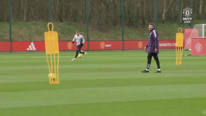 传球练习中,曼联球员先进行短促有力的传球,然后移动到下一个练习点,转而带球向前推进。为曼联官方电视台MUTV工作的名宿丹尼·辛普森透露,在训练的最后阶段,球队进行了攻防演练,球员分三队进行快节奏的对抗,锻炼逼抢下的球权控制能力。