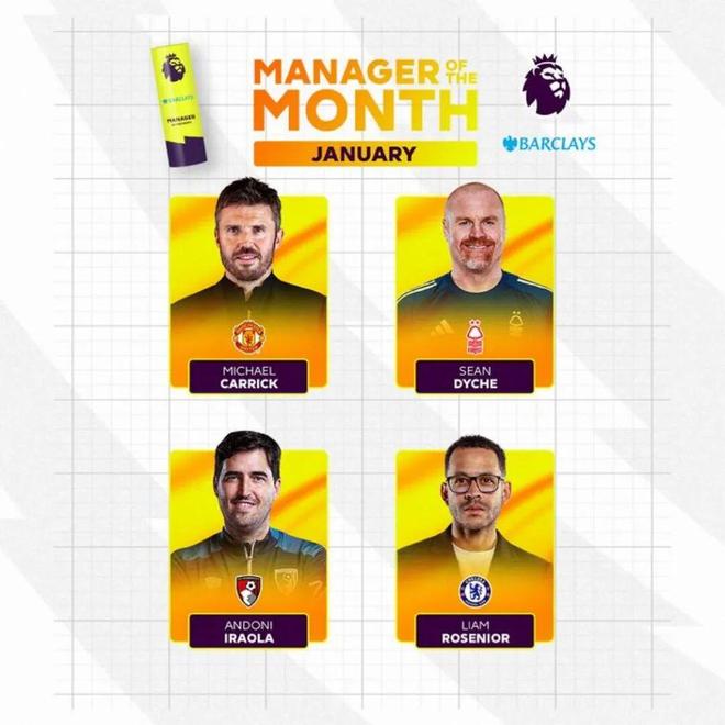 官方:卡里克入围英超1月最佳主帅候选