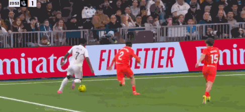 易边再战皇马继续压制皇家社会,开场不到1分钟,维尼修斯又在禁区左路强突阿兰布鲁,阿兰布鲁这次第一下没被急停变向晃到,但是维尼修斯第二次变向穿裆人球分过,阿兰布鲁还是犯错将维尼修斯铲倒,皇马再次获得点球机会。维尼修斯再次亲自操刀主罚命中,维尼修斯梅开二度,皇马4:1继续扩大领先优势。第54分钟,贡萨洛高速插上再次获得半单刀机会,只是他这次停球就莫名其妙的失误了,再次错失良机。比赛尾声阶段,奥斯卡森和维尼修斯都打入一球,但都是越位在先被吹掉。最终皇马主场4:1大胜皇家社会,豪夺西甲8连胜。